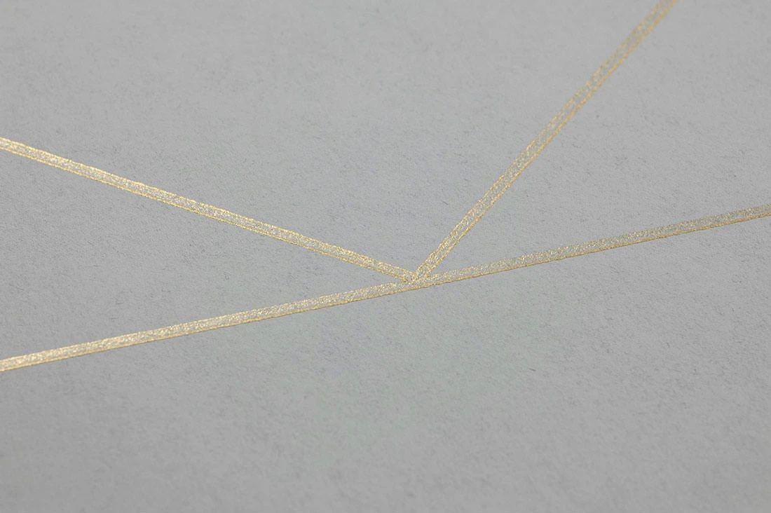 Feine, golden schimmernde Linien – mal parallel, mal aufeinander zulaufend und sich diagonal kreuzend – formieren sich auf dieser eleganten Vliestapete von Ferm Living zu geometrischen Figuren wie Dreiecken und Trapezen. Ihre Wand gewinnt fast unmerklich eine ordnende Struktur. Das helle Blasspastellgrün des Grunds in Verbindung mit dem Gold der Linien lässt dabei jeden Lichtstrahl seine ganze erhellende Wirkung entfalten.