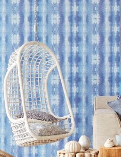 Spanische Majolika und indische Batik – Aus dieser Verbindung entsteht ein Ethno-Streifenmuster, das Räume im Shabby oder Country Chic perfekt ausfüllt. Die sanften Blautöne wirken erfrischend beruhigend und sind ideal zum Entspannen und zur Bündelung neuer Energien. Einen wunderbaren Kontrast setzt die Vinyl-Oberfläche in Textiloptik, die eine scheuerbeständige Reinigung der Tapete ermöglicht.