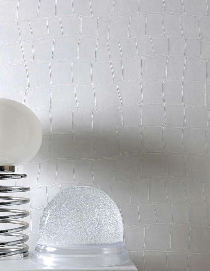 Naturgetreu imitiertes Krokodilleder mit seiner charakteristischen Narbenstruktur in Weiß stellt einen dezent extravaganten Schmuck für einen exklusiven Raum dar. In die Vinyloberfläche ist die Narbenstruktur als fühlbares Relief eingeprägt. Gleichzeitig ist die Tapete hoch waschbeständig, so dass sie problemlos auch Ihr Bad verschönern kann. Farblich haben Sie die freie Auswahl: Zum frischen Weiß der Leder-Imitation passt praktisch jede andere Farbe!