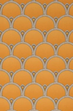 Aus Bögen in Grau und Grauweiß setzen sich fächerförmige Ornamente zusammen, wie sie im Art Deco häufig vorkommen. Sie strahlen in leuchtendem Maisgelb und füllen Ihre Räume mit Licht. Ein schönes Detail: Im Zentrum eines jeden Ornaments wiederholt sich das Muster im Kleinen mit einem gelben Fächer und einem grauweißen Rahmen. Moxie hat eine hoch waschbeständige Vinyloberfläche und bringt ihre sonnige Leuchtkraft auch in Ihrem Bad problemlos zur Geltung.