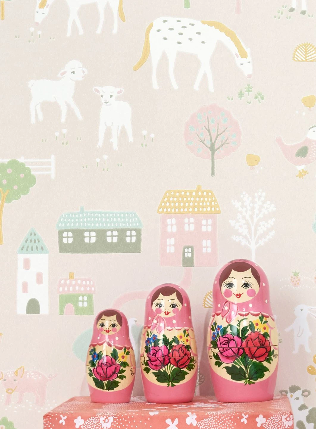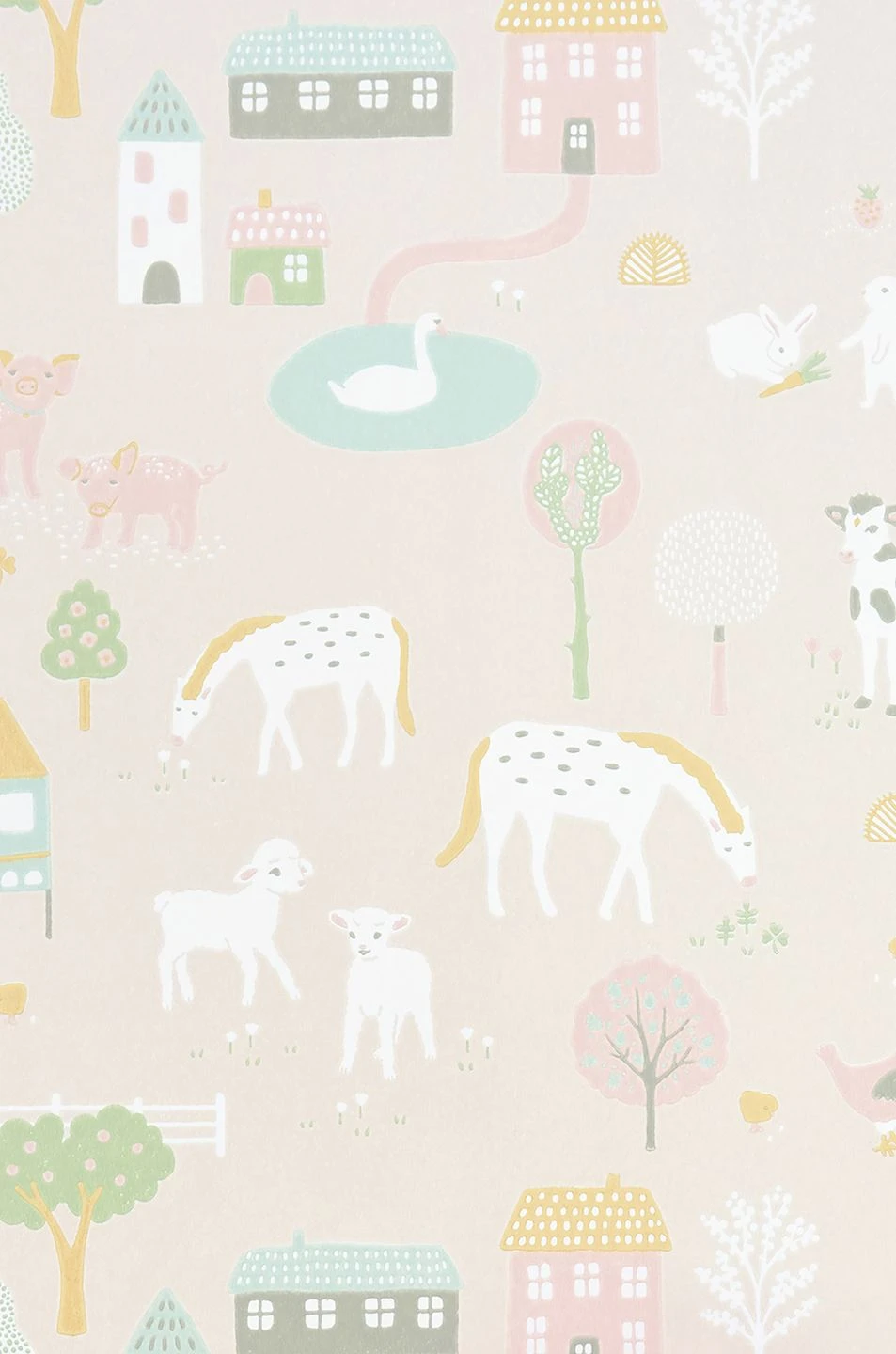 Das liebevolle, extra für Kinder gestaltete Design dieser Vliestapete erweckt einen ganzen Bauernhof zum Leben. Große und kleine Tiere in freundlichen, hellen Farben sind zwischen den Gebäuden und den blühenden Bäumen auf zartrosa Grund zu entdecken. Die Szenen regen die spielerische Phantasie an und erinnern an unbeschwerte Ferien auf dem Bauernhof. Der schwedische Hersteller Majvillan kreiert mit seinen Entwürfen kindgerechte Räume zum Wohlfühlen.