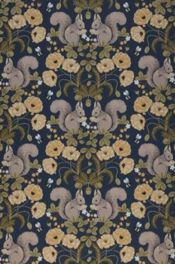 Hier sind die niedlichen Eichhörnchen der Hingucker. Immer zu zweit angeordnet, setzen sie sich zusammen mit den Blüten, Blättern und Früchten, die sie umgeben, zu einem symmetrischen, klassisch anmutenden Arrangement zusammen. So vereint Pihla Vintage-Elemente in Farbgebung und Form mit ausgefallenen Motiven, die zum freundlichen skandinavischen Stil ebenso harmonieren wie zu antiken Möbeln. Der dunkelblaue Hintergrund steuert Ruhe und Hochwertigkeit bei.