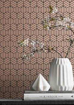 Glitterndes Rosenholz setzt die quer und längs verlaufenden Hexagone in ein kupferglänzendes Licht. Das schwarze, verspielte Geometriemuster liebt die Abwechslung und ist ein Eyecatcher für Gestaltungsideen, die Vintage und Moderne verbinden. Es bietet dem Auge Struktur und glanzvolle Blickpunkte.