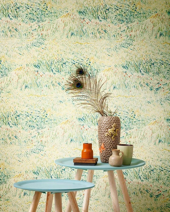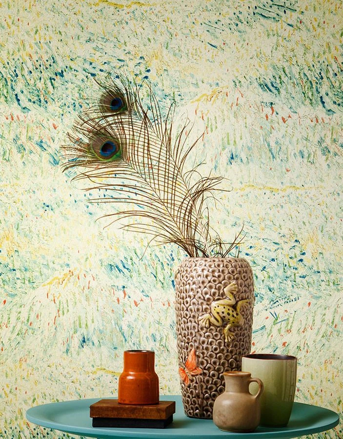 Eine Wiese in der warmen Sommersonne. Gräser und Wiesenblumen in hellen Farben leuchten im Sonnenschein, so dass man beinahe die Wärme der Sonnenstrahlen zu spüren meint – und das im Stil des niederländischen Malers van Gogh. Seine ausdrucksvollen, kräftigen Pinselstriche sind im Vinyl der Oberfläche als feine Struktur fühlbar. Gleichzeitig ist die Oberfläche hoch waschbeständig, so dass Sie auch Ihr Badezimmer mit der sonnigen Stimmung aufhellen können.