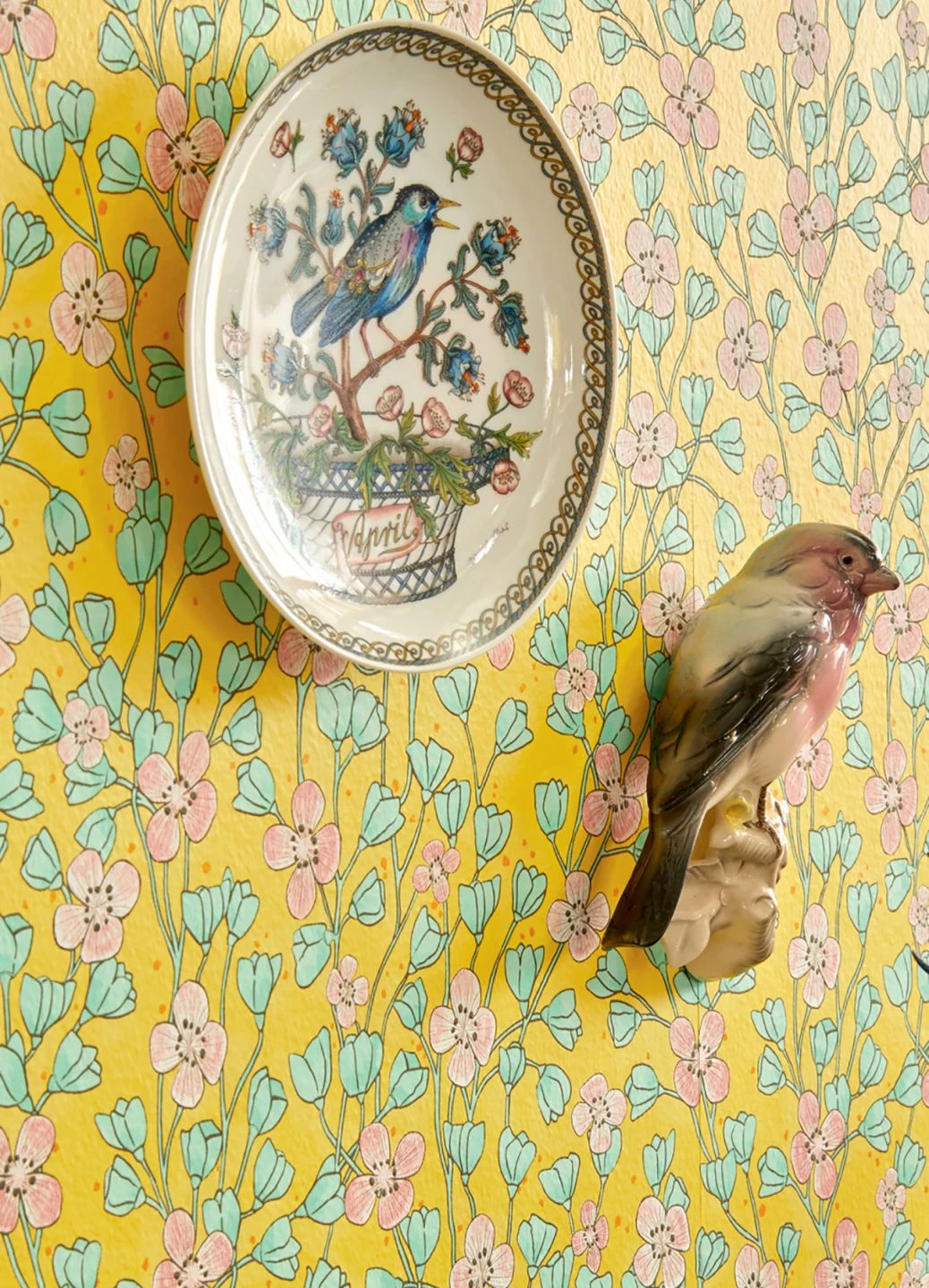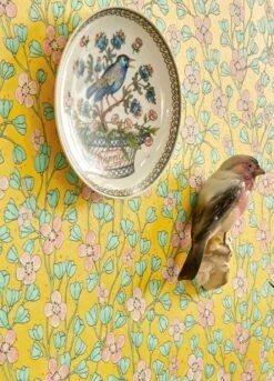Sonniges Gelb gesprenkelt mit orangefarbenen Punkten leuchtet zwischen den zarten Blumenranken auf dieser Vliestapete hervor. Die von Altrosa bis ins Weiße spielenden Blüten und die pastellgrünen Blattranken stellen der leuchtenden Grundfarbe ein sanftes Gegengewicht zur Seite. Die fröhlichen Farben der Tapete betonen das Sonnenlicht in Ihrem Raum und schaffen eine Atmosphäre der Lebensfreude und des Frühlings.